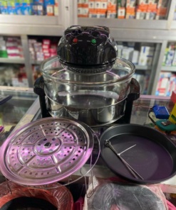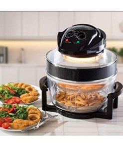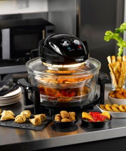 Халогенската рерна доаѓа со термо-отпорна основа и две подлоги така што можете да готвите на две нивоа истовремено. Безбедно можете да готвите и со фолија – идеално за секакви рецепти. Компактна е да ја сместите било каде на Вашата работна површина… и преносна да ја земете со себе.