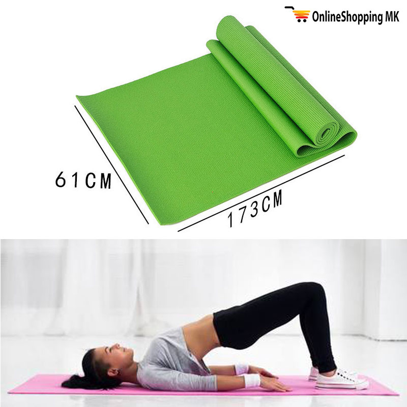 Јога подлогата за вежби е со мека површина и дебелина од 5mm, не се лизга, не впива течности и прашина. Ја зголемува комфорноста при вежби кога телото е во допир со подот. Исклучително е практична и преносна и кога не ја користите можете да ја соберете во ролна, материјалот не поти, не собира прашина и е многу пријатен на допир.