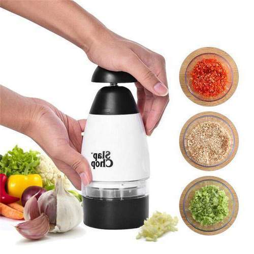 Со едно притискање на рачниот сечко можете да исечкате поголеми парчиња, со две притискања се намалува двојно големината, а со три и повеќе можете да добите фини мали парчиња како додатоци за храна.